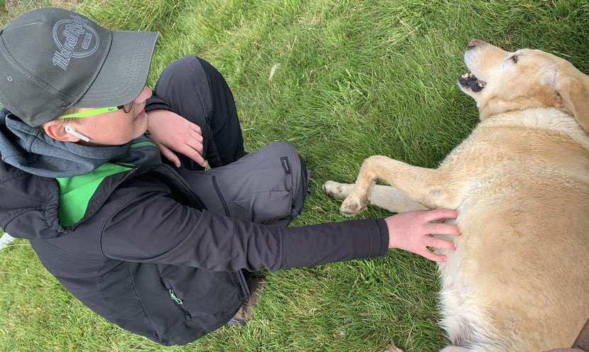 Der Hofhund hat sich vor uns hingeschmissen, lies sich krabbeln und verschwand dann im Hühnerstall - als Begrüßungsgeschenk hat er uns einen Stein mitgebracht
