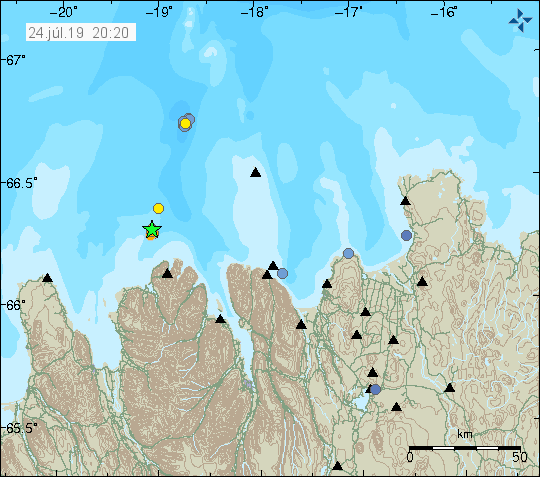 Um 0:55 Uhr in der Nacht hat die Erde gebebt. Rund 100 km nördlich von uns, 20 km nordwestlich von Siglufjörður bebte es mit einer Stärke von 4.6 auf der nach oben offenen Richterskala in der Tjörnes Fracture Zone. Das war selbst für die Gegend ungewöhnlich heftig, zuletzt 2012. Ich bin von dem Beben wach geworden und fand es eigentlich ganz spannend. Kommt ja nich allzu häufig vor, dass man ein Erdbeben miterlebt.