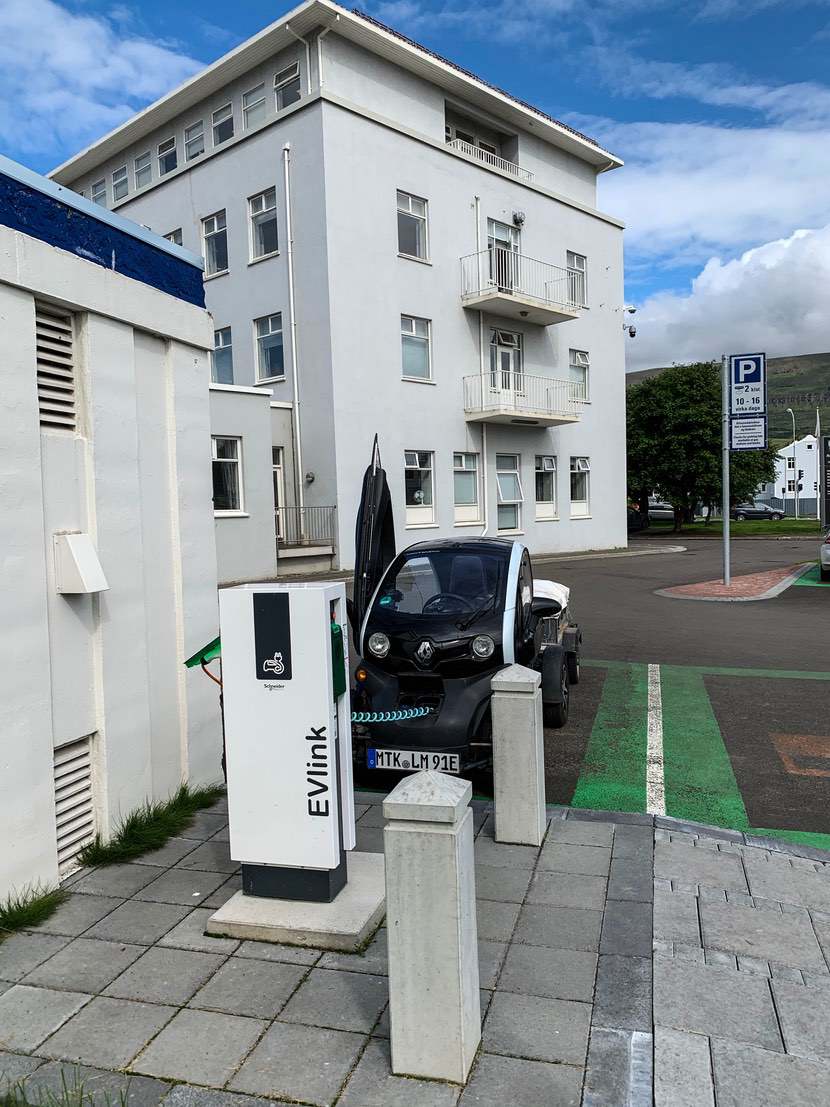 Wir dürfen dann doch ins Café, erst um 11:30 Uhr wird eine größere Gruppe erwartet. Wir laufen danach ein wenig durch Hofsós und warten darauf, dass der Twizy auf mindestens 80% geladen ist. In Siglufjörður gibt es wieder eine Ladesäule, bis dahin schaffen wir es aber nicht ohne zwischenladen.