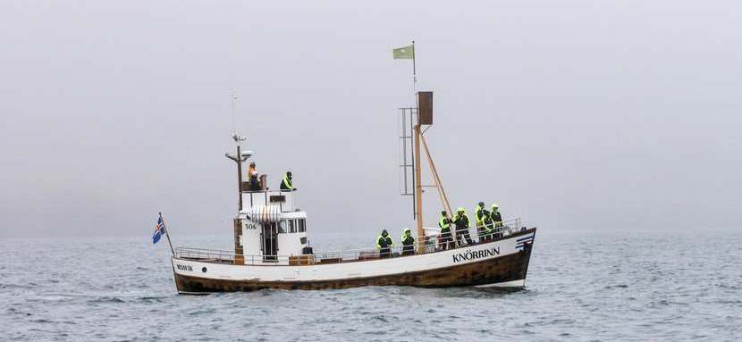 Nach einigen Sichtungen des immer wieder abgetauchten Minkwals hat man ein Einsehen und lässt ihn ziehen. Das Boot fährt noch ein Stück Richtung Meer, bevor man sich entschliesst, wieder zurück zum Hafen zu fahren. Man könne auf dem Meer aufgrund des Nebels sowieso nichts sehen. Es gibt nun Kaffee, heisse Schokolade und Kekse.