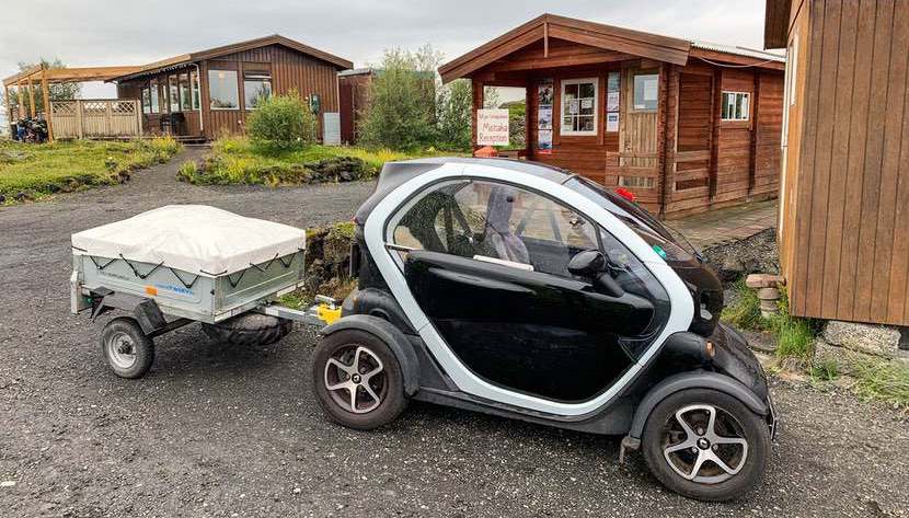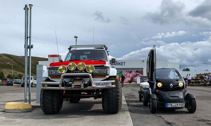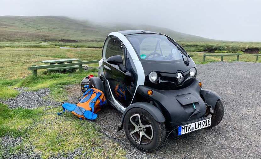 Wir werden von jemandem angesprochen, der von unserer Tour im Islandreise-Forum gelesen hat. Und er interessiert sich für einen Twizy. Gute Kombination!