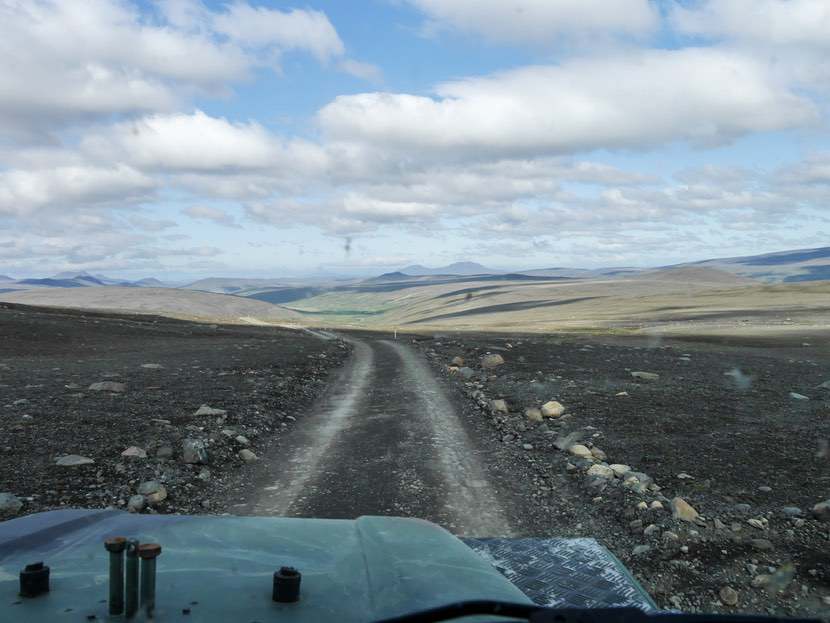 Wenn man also richtig Schwung genommen hat und mit 70km/h unterwegs ist, hört der Asphalt plötzlich für 200 m auf, es geht über eine Rüttelpiste, dann wieder 30 m Asphalt, gefolgt wiederum von Staub, Steinen und noch mehr Rüttel. Dann gerne auch 10% Steigung auf Schotter. Parallel überholen die Isländer noch.