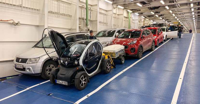Mit Anlegen am Hafen gehen wir runter aufs Autodeck zu unserem Twizy und müssen noch ein wenig warten, bis wir das Schiff verlassen können. Am Hafen warten schon Ehefrau, Tochter und Hündin sehnsüchtig auf uns.