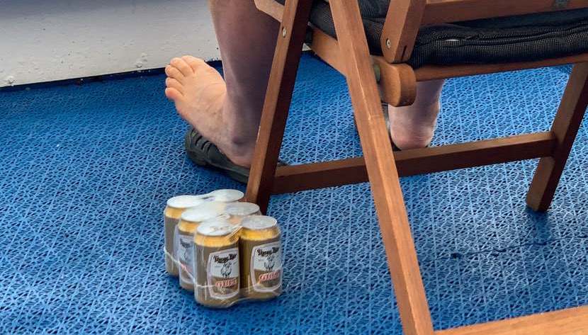 Wir trinken ein Bier bzw. eine Limo aus dem Duty-Free-Shop und schauen noch eine Weile auf das Meer.