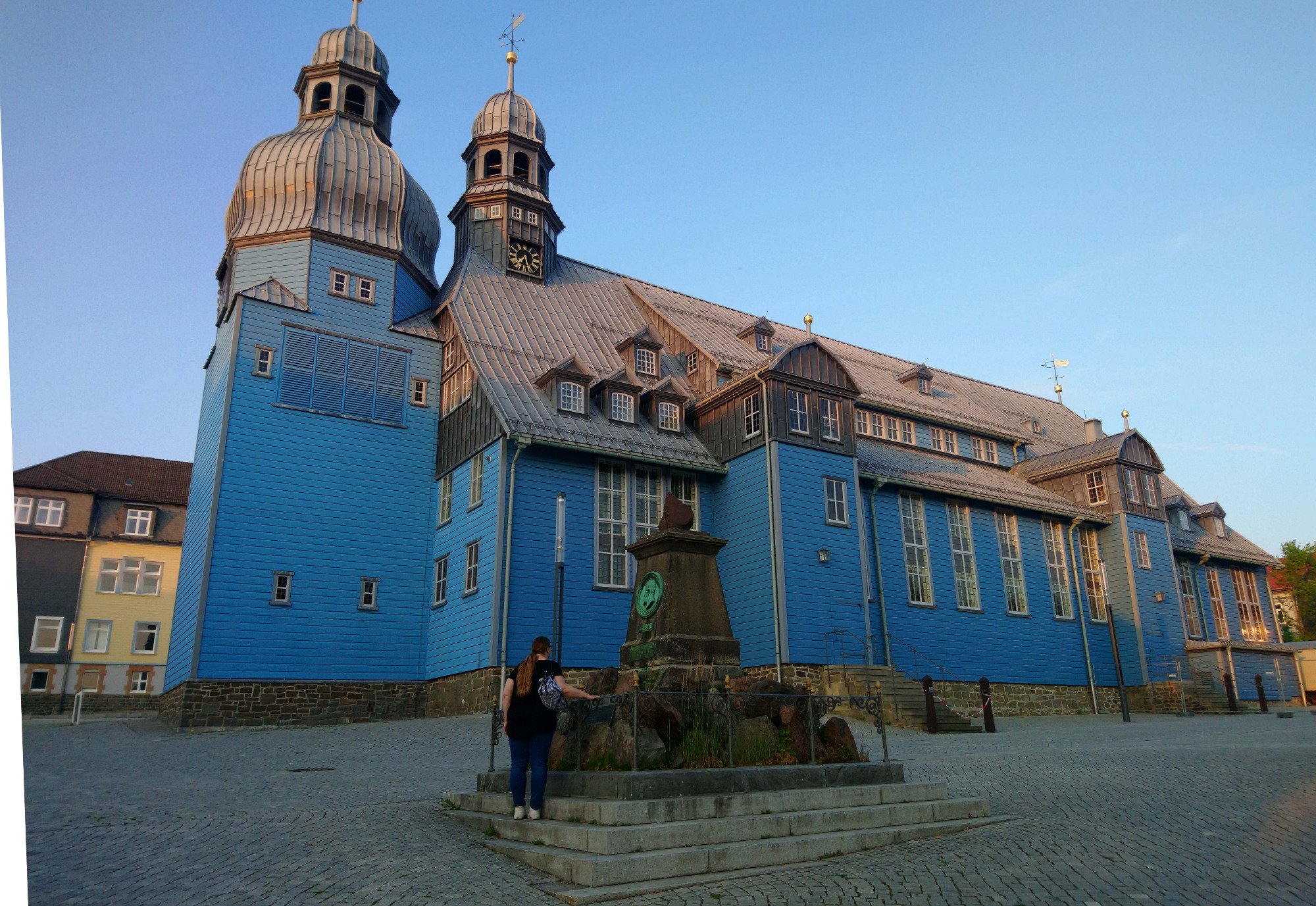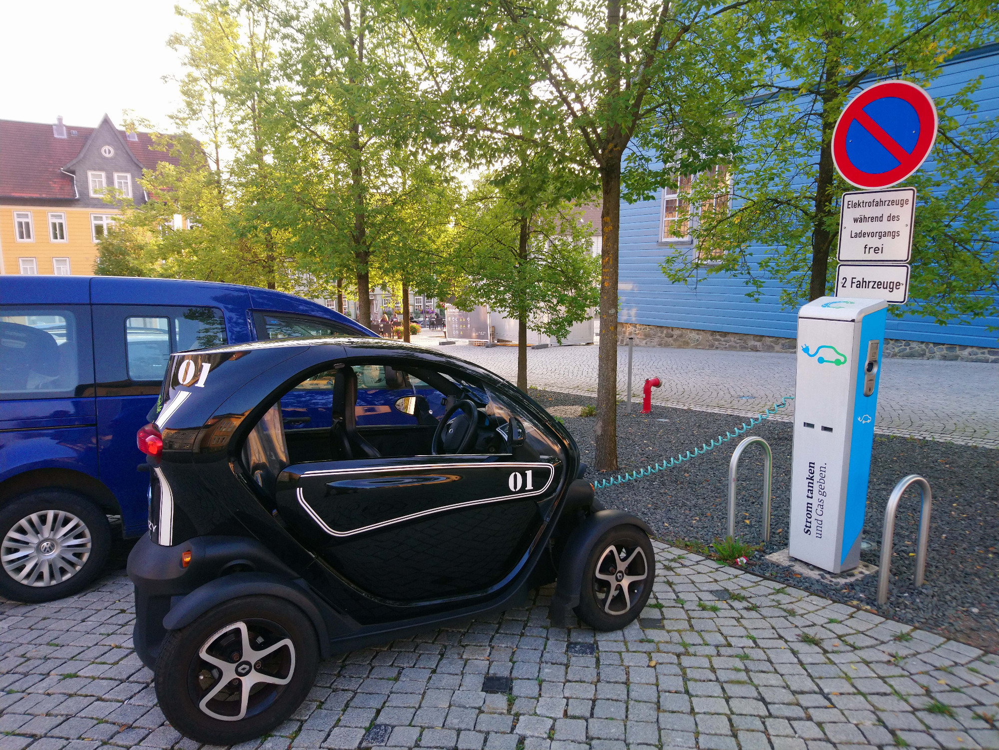 Bei der Einfahrt nach Clausthal Zellerfeld piept es, 1 Balken ist noch übrig. Wo war die Säule - links oder rechts abbiegen? Ich tippe auf links und wir kommen mit 1km Restreichweite an der Ladesäule hinter der Marktkirche an.