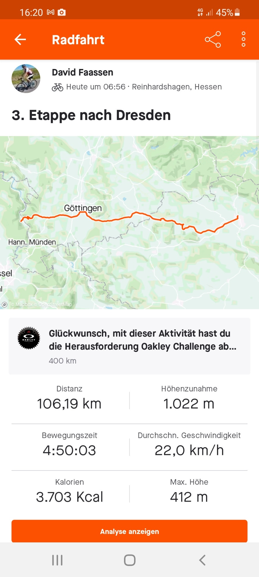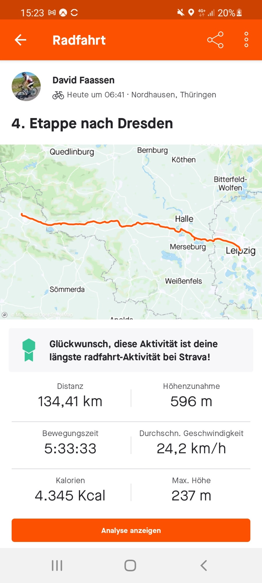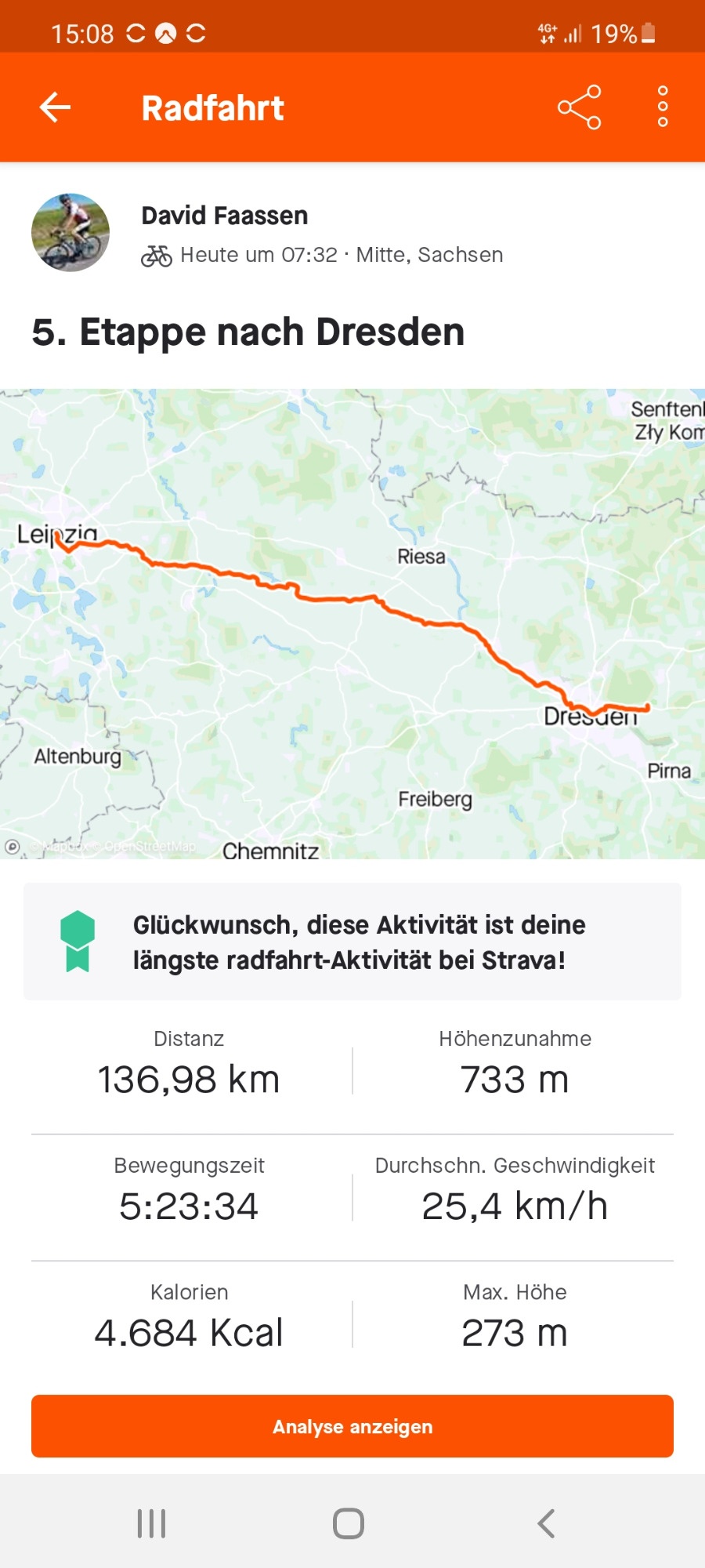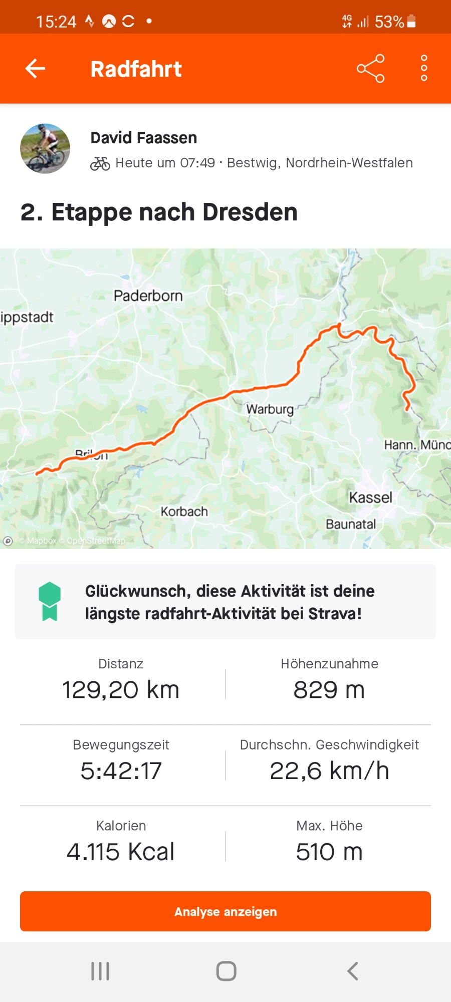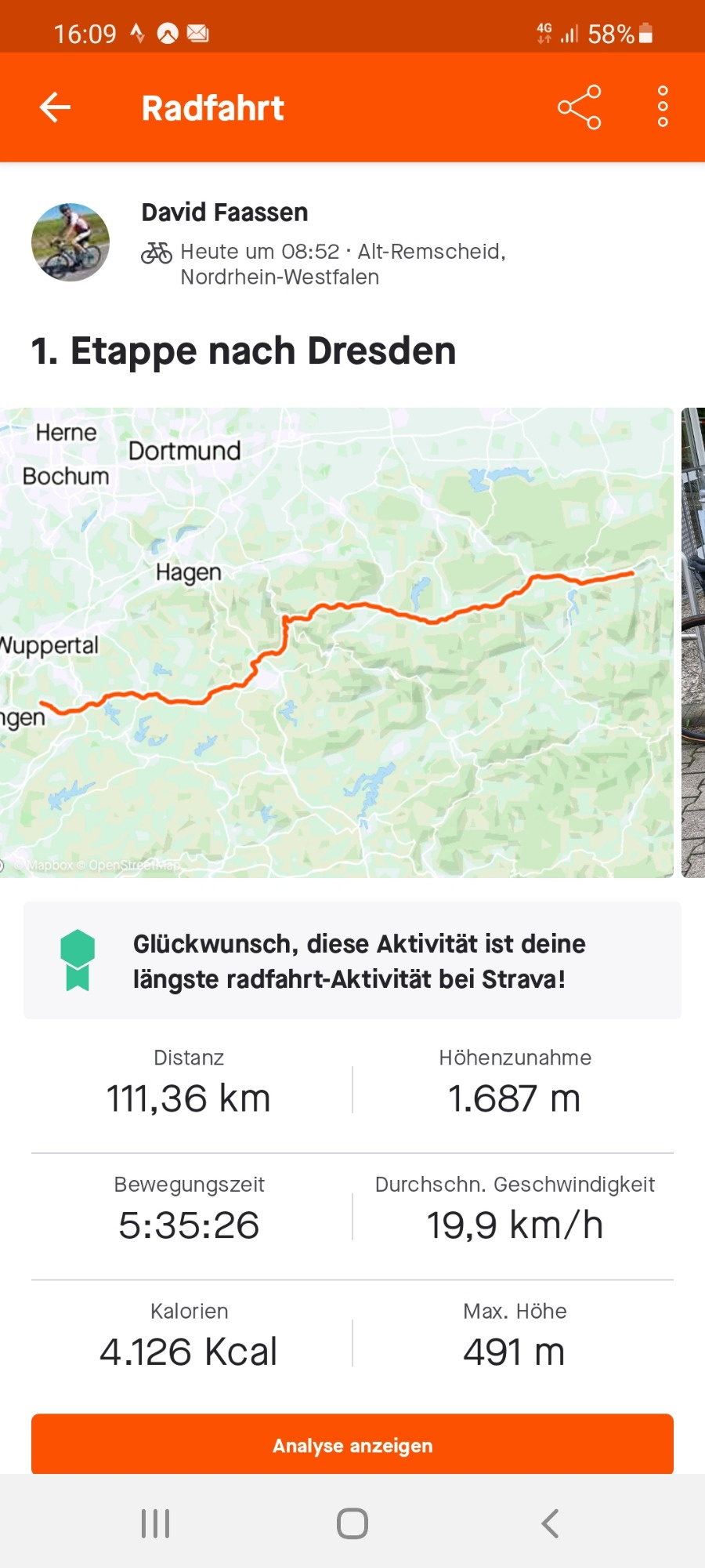 Es ging mit dem Gravelbike von Remscheid nach Dresden, insgesamt 625 km in 5 Etappen.