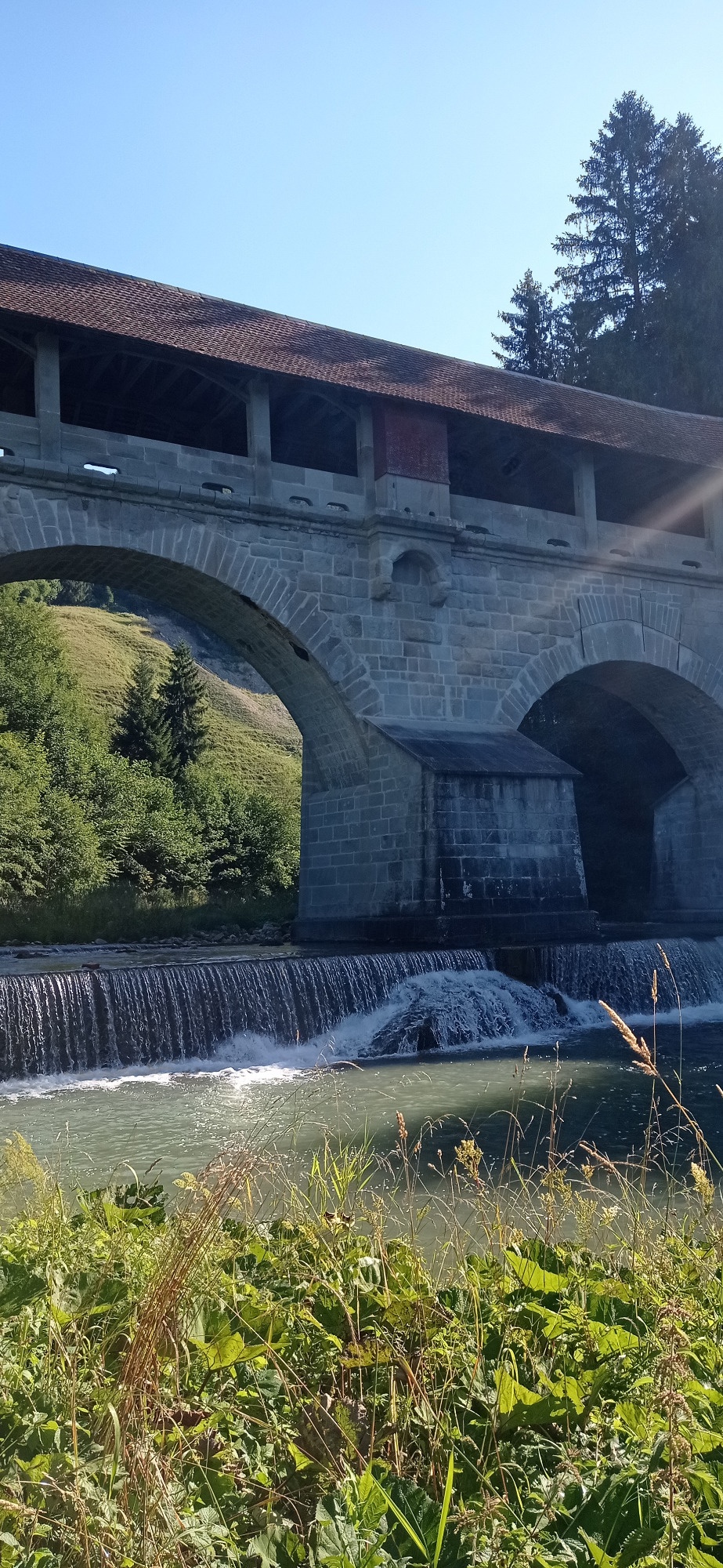 Der nächste Tag...und wir wurden von einem Alphorn gewecket. Wow...da steht man senkrecht im Bett und glaubt man träumt noch. Was für eine Nummer. Wir verabschiedeten uns nach einem reichhaltigem Frühstück und unseren Gastgebern und schworen, wir müssen wiederkommen. Der Rückweck in Richtung Bodensee führte uns über eineinen schmalen asphaltierten Feldweg, der plötzlich in einen staubigen Schotterweg überging, dann wieder eine Huckelpiste war mit Asphalt. Um eine Kurve tauchte dann eine urige Brücke auf, die...