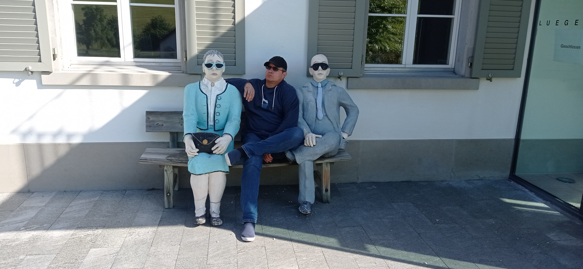 dem Stihlsee, Willerzell nach Einsiedeln. Hier überraschte uns vor dem Kloster ein Typ vom Stiele eines Promoters, wie man Ihn eher von der Reperbahn oder Ballermann vermuten würde. Vor dem Kloster war diveres Gastrnomie und der besagte schräge Typ quatschte uns laut und während der Vorbeifahrt an, bot uns Visitenkarten eines Gastauses an, mit der man wohl das Getränk oder Essen günstiger bekommt. Das war irgendwie schräg, unerwartet komisch.
