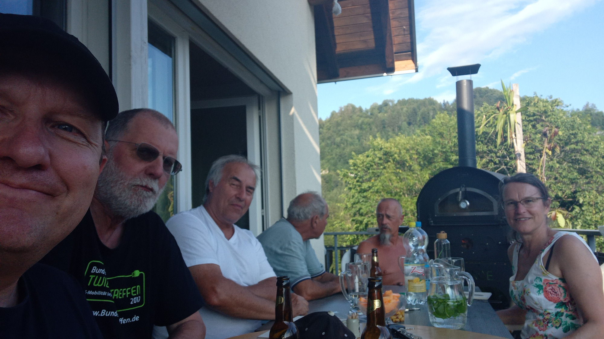SR und seine Frau waren die überaus charmanten Gastgeber. Der Abend klang mit einem umpfangreichen Essen aus. Leckeres vom Grill und viele Salate plus schweizer Bier, eine tolle Kombination mit diesem herrlichen Blick, was will man mehr.
