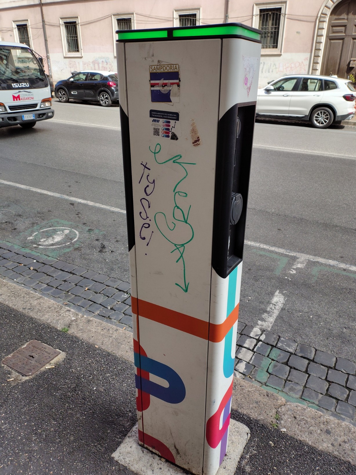 entweder ich steh auf dem kabel oder da hat einer den sinn vom parken und laden nicht richtig verstanden...Pfälzer68 schrieb: Auch in Rom gibts quasi an jeder Ecke Ladepunkte, die dank drakonischer Strafen auch nie zugeparkt sind.. wenn ich den Büttel richtig verstanden habe kost das 350€...