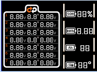 cell voltages, module temperatures, SOC and total voltage.