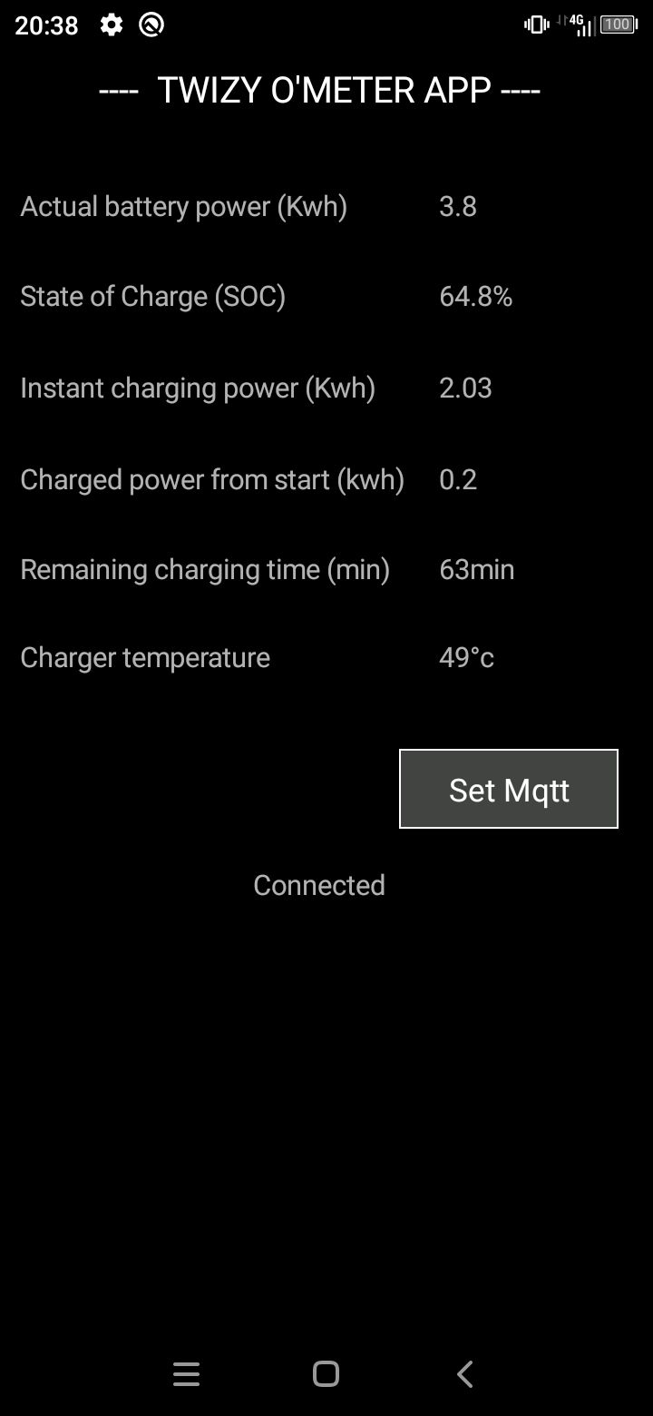 A good news for all: today my stressed Twizy o'meter prototype was connected sussessfully to internet via Wi-Fi, and sent its first "Hello world" (with SOC percentage) to Mqtt broker.