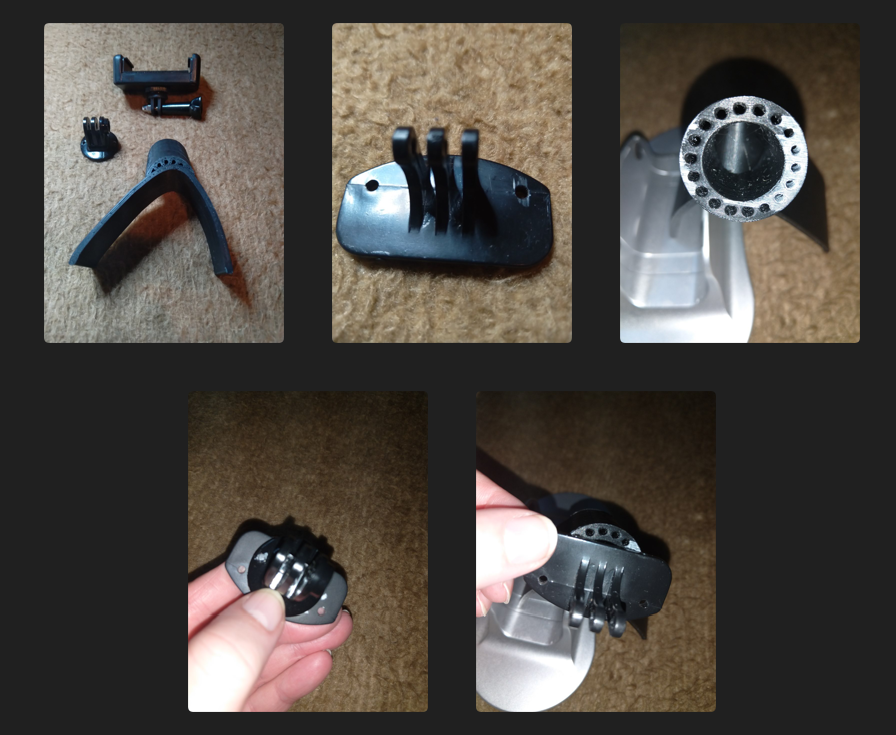 Ist nicht meine Idee. Der gedruckte Halter ist schon seit Jahren im Forum verfügbar, ich habe nur die Teile für die "Aktion-Cam" Halterungen kombiniert mit Handyklammern an den Halter integriert.