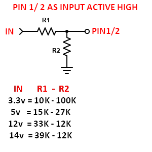 Pin 1 & 2 can be used, indipendently, as input or output, active low or active high, according to the settings of the web server "Expansion board" page.