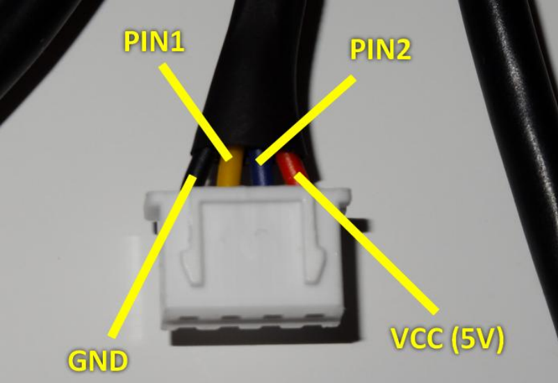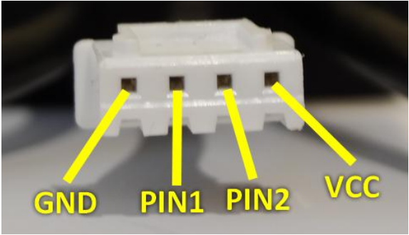 Looking at our photo of the button connector, the right wire is GND and the left wire is PIN1. But it's better you check with a multimeter.
