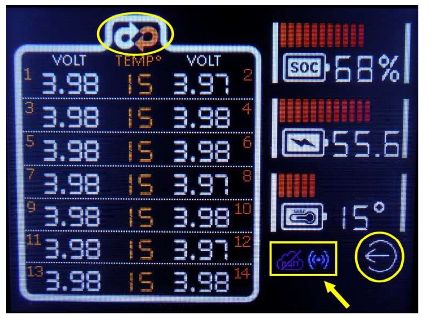 Auf das Akku-Symbol drücken und dann mehrmals auf das Wechsel-Symbol.