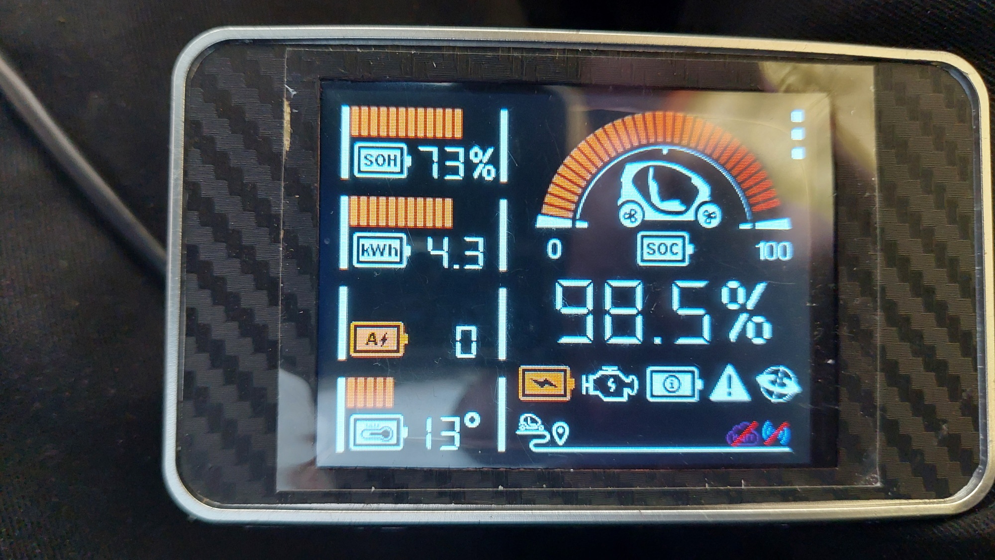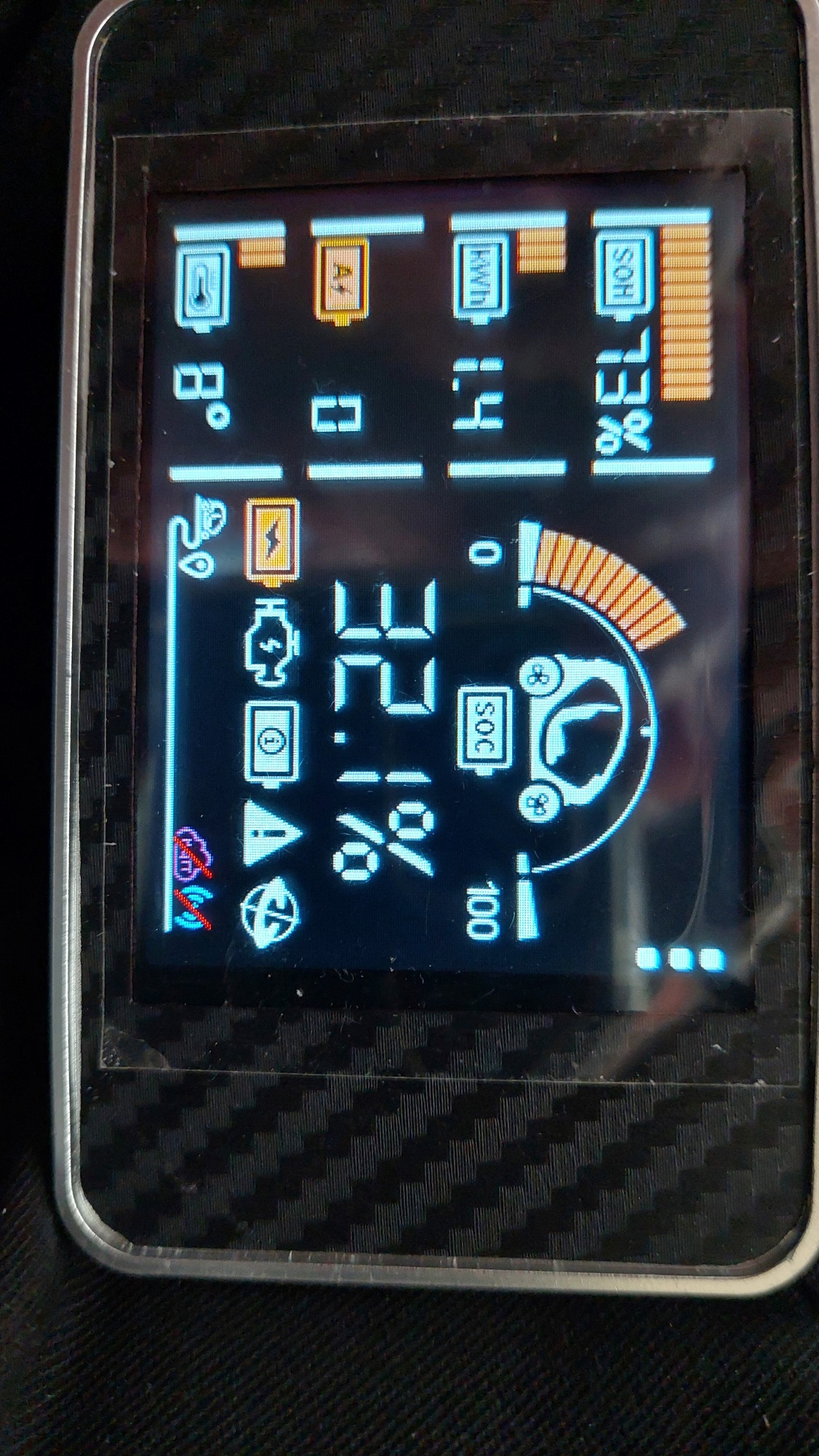 Um SOC 100% anzuzeigen, müssten aber alle 32 Segmente vom "Bogen" in orange "aufleuchten".