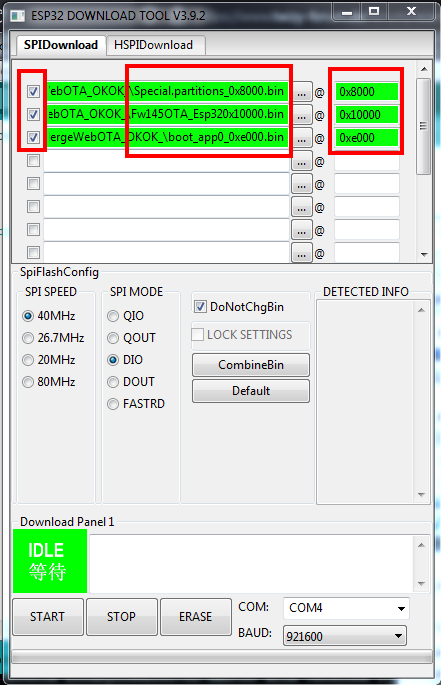 Check twice (three times... four times.... n times ....) the address numbers you have to enter for each file (0x8000, 0x10000, 0xe000), before hitting "Start".
