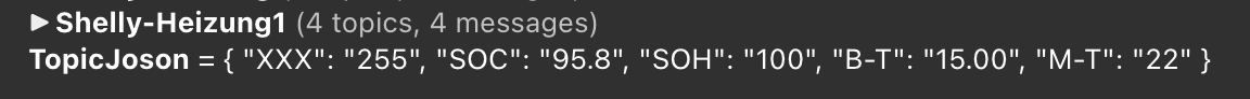 Ok. I changed (for example) from C1: to C01. I enclose the fw with this mod. Can you tell me if C13 is fixed too?maikt schrieb: The first problem is the ':' character in the BatteryCell voltage and temperature values. because this character is not allowed in the json transformationPattern.