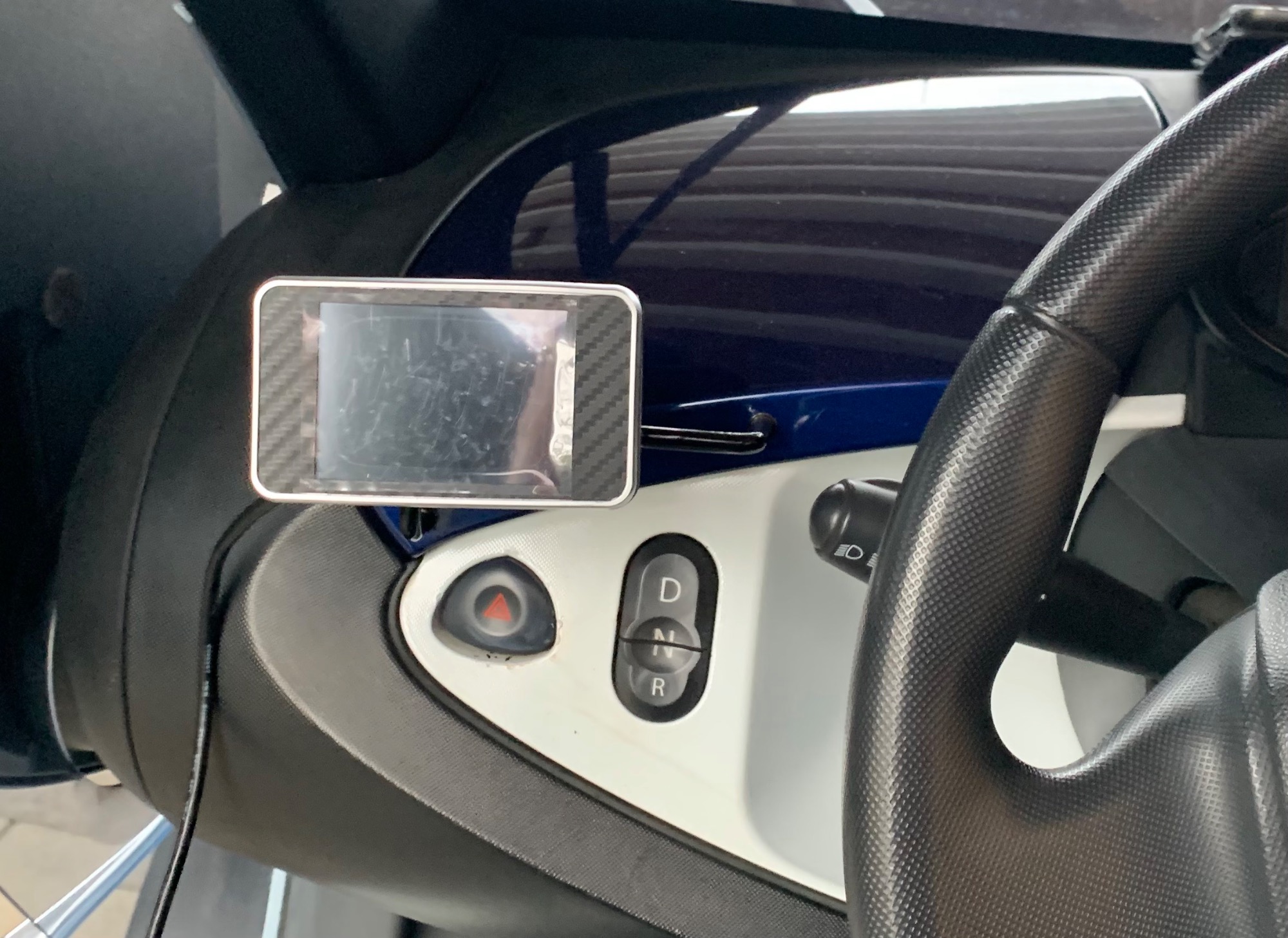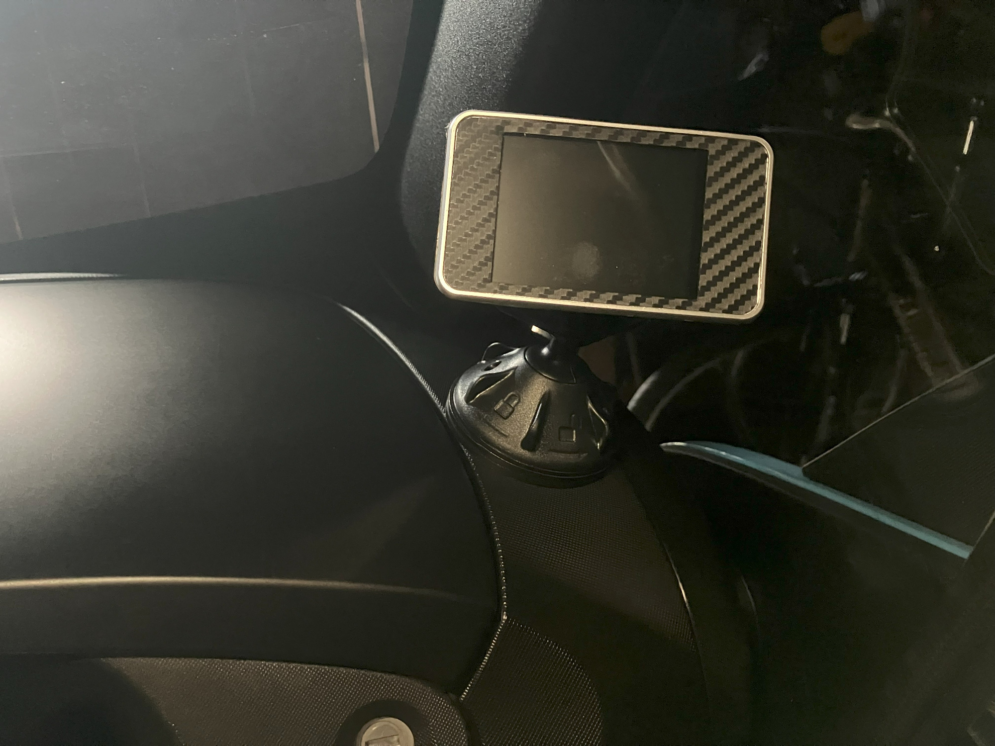 Auf diese Platte habe ich die Montageplatte des ToM mittels des beigefügten doppelseitigen Klebepads geklebt. Die Saugnapfhalterung ist bei mir rechts vom rechten Handschuhfach platziert.