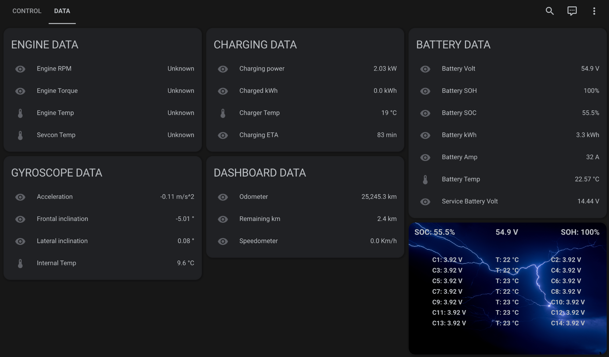 The only missing feature for now is the ability to use mqtt to control the current of the charger on the twizy ..