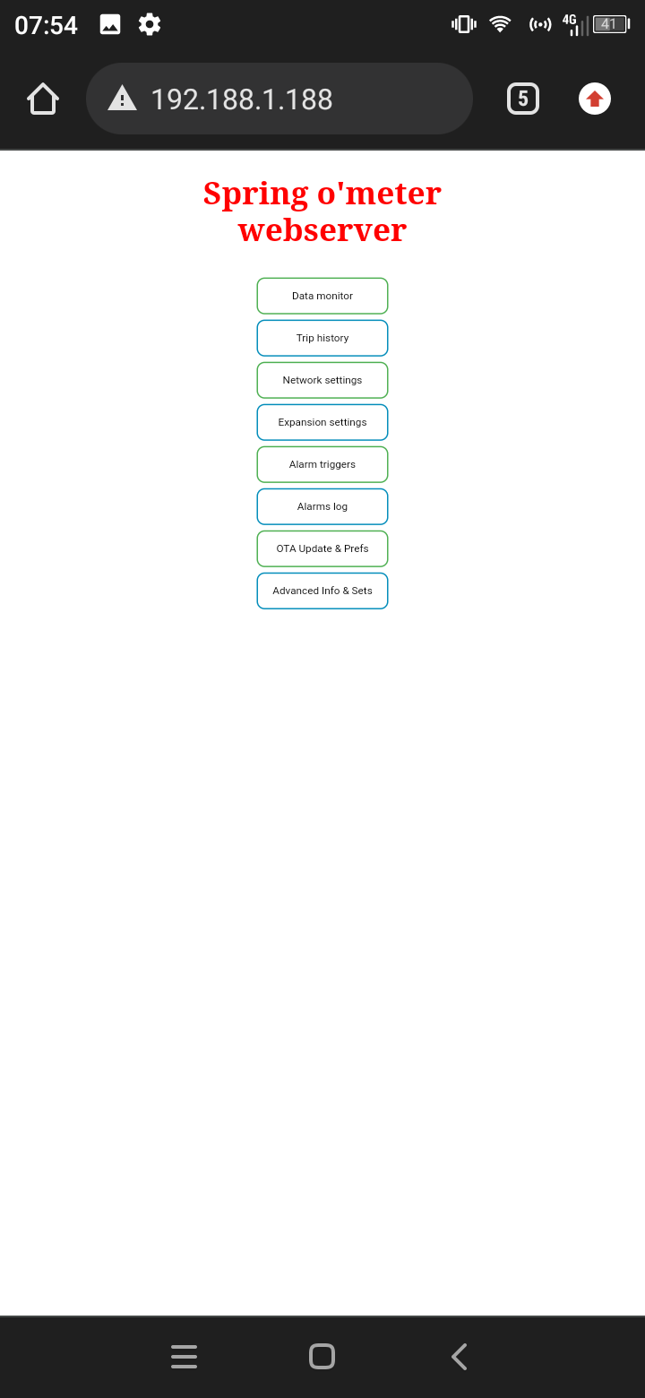 Webserver was also tested on iPhone (and on iOS laptop) while ToM was connected to an Android hotspot or home WiFi and it works as expected. In this case iPhone (or laptop) and ToM are on the same network even if it's not the iPhone private hotspot. So, since your phone isn't connected to "Twiz O Meter AP", you will have to enter on the browser ToM network IP. You can find this IP on the WiFi settings page on your ToM display. As shown in the image this time its IP was 192.168.43.202 instead of 192.188.1.188, and it works fine as well.