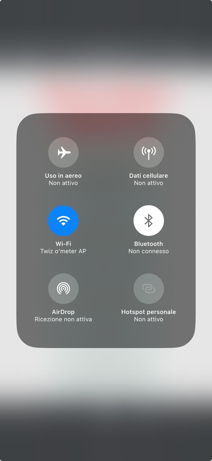 2) Now turn on WiFi on your iPhone. You should find "Twiz o'meter AP". Select it and, when requested for password, enter "pass" (without qoutes) followed by your serial number (serial number is written on the blackbox label or in the ToM settings page). For example, if your serial number is 123456 write pass123456. You should be at this point: