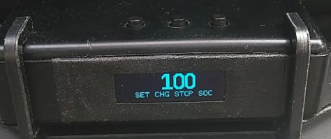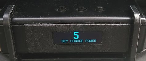 Ein Druck auf die mittlere Taste blendet für wenige Sekunden in der unteren Zeile, das aktuelle eingestellte Ladeprofil ein.