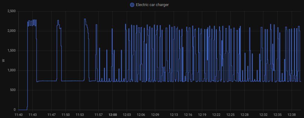 * Reduced charging power still sometimes, but not always, still bounces around a lot: