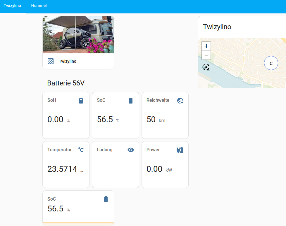 Das ganze funktioniert grundsätzlich auch. Mein Ladegerät scheint wohl irgendwann getauscht worden zu sein, ich sehe alle 35 Minuten das der Wert aktualisiert wird, also ein Twizy Ladegerät der neueren Generation, was alle 40 Minuten die 12V Batterie nachlädt.