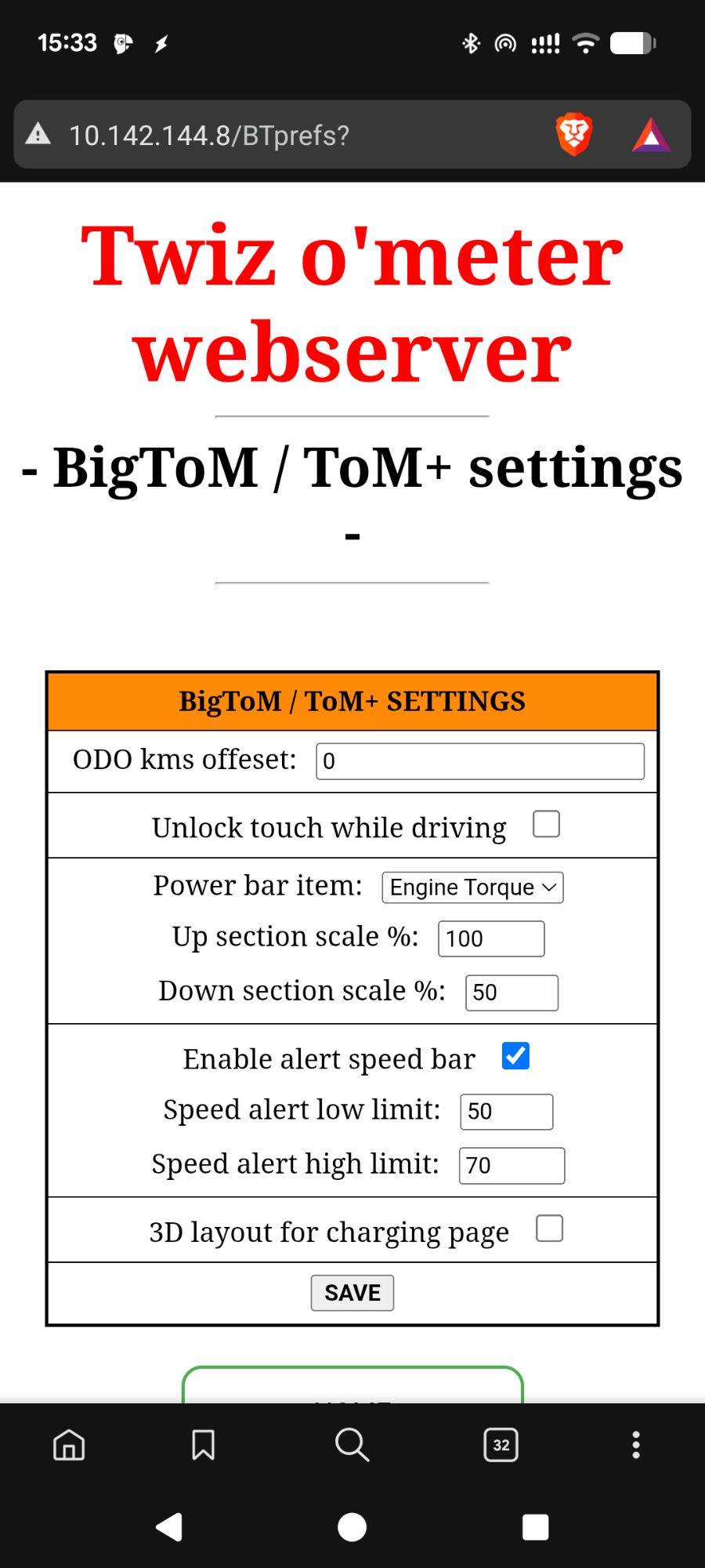And, if you prefer to have the new 3D layout also for the charging page, enable it in the BigToM/ToM+ page of the webUI and press SAVE