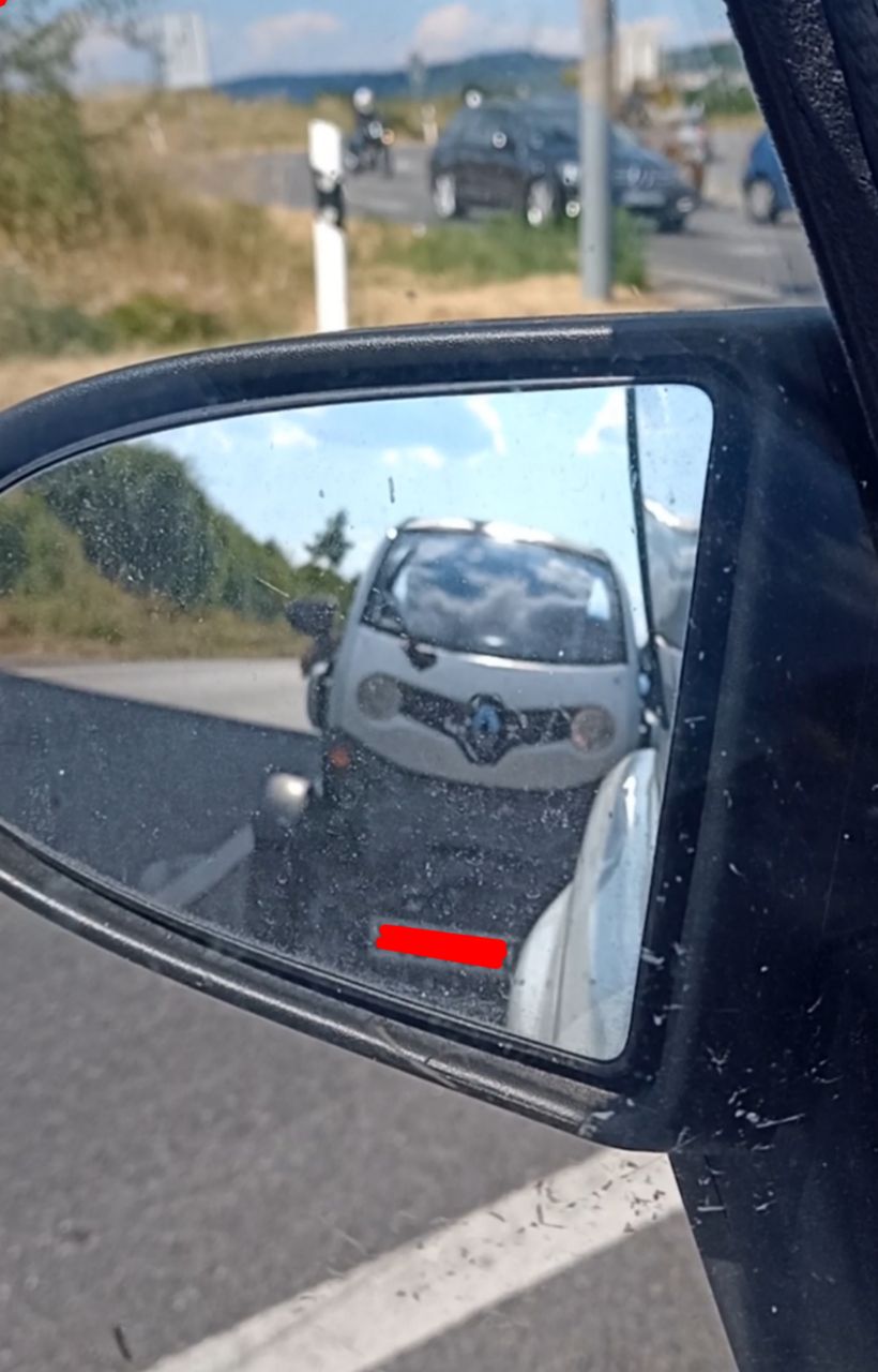Hellblauer Twizy ist entgegengekommen, es wurde beidseitig freundlich per Handsignal gegrüsst.