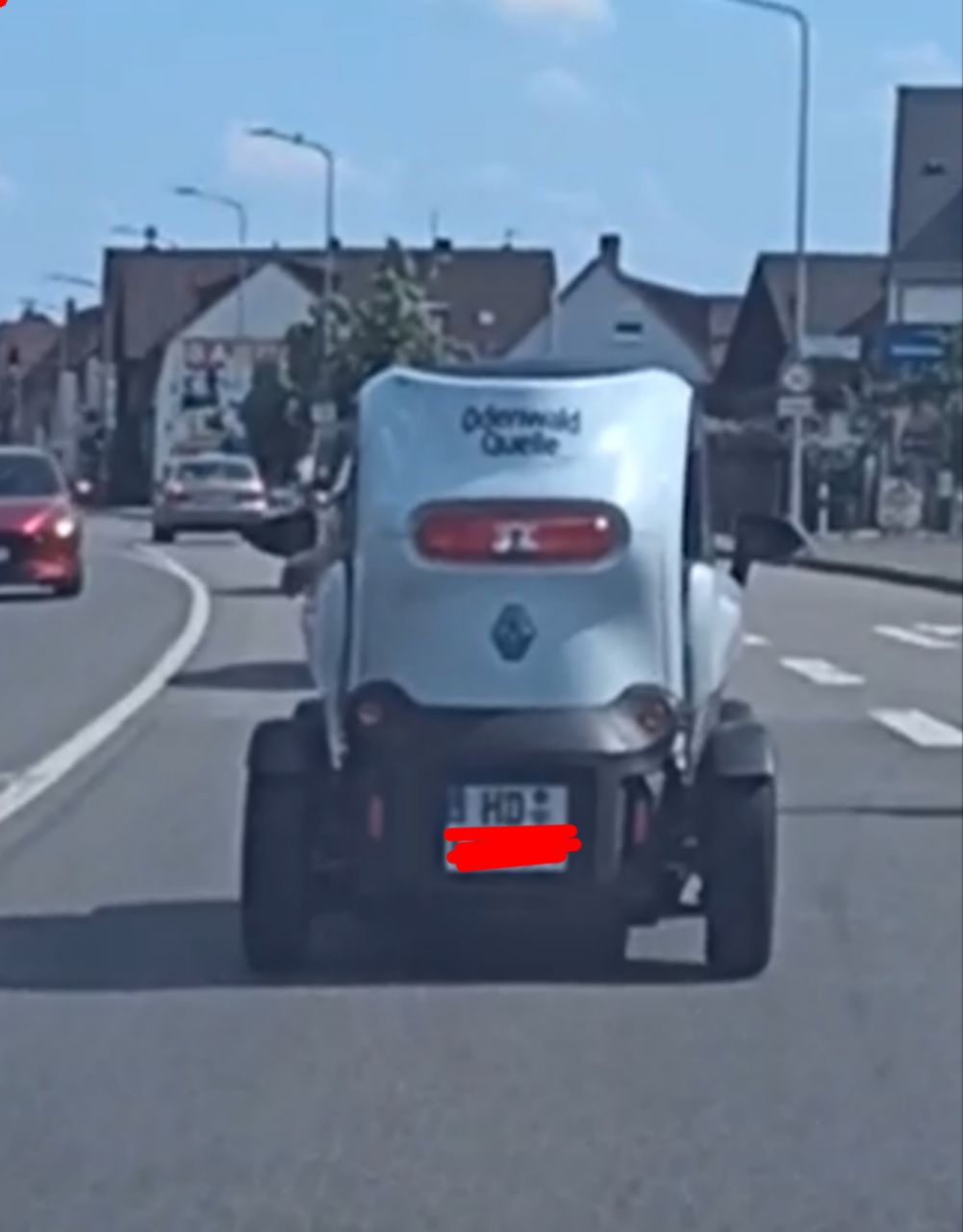 Der Navi hat mich über Wege geschickt, die ich mit dem Auto nicht fahren würde. So gegen 15:00 Uhr kam mir in Wipperfürt ein scharzer Twizy entgegen.