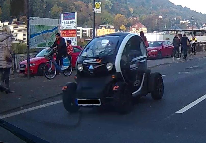 Letzten Freitag (25. November) gegen 18:15 in der Dachauer Straße in München Höhe Bauberger/Pelkovenstraße einen weißen Twizy OHNE Türen gesehen, der von B-Str kam und in die P-Str. fuhr. Ich hupte und er grüßte zurück, just bevor er mir aus dem Blickfeld entschwand.