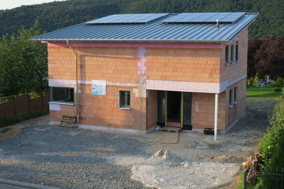 Das Haus wird übrigens mit einer Erdwärmepumpe geheizt. Kein Gas, kein Öl, kein Kamin, keine Pellets. Rechnerisch sollte der produzierte Strom ausreichen, mal schauen, was die Realität so zeigt.
