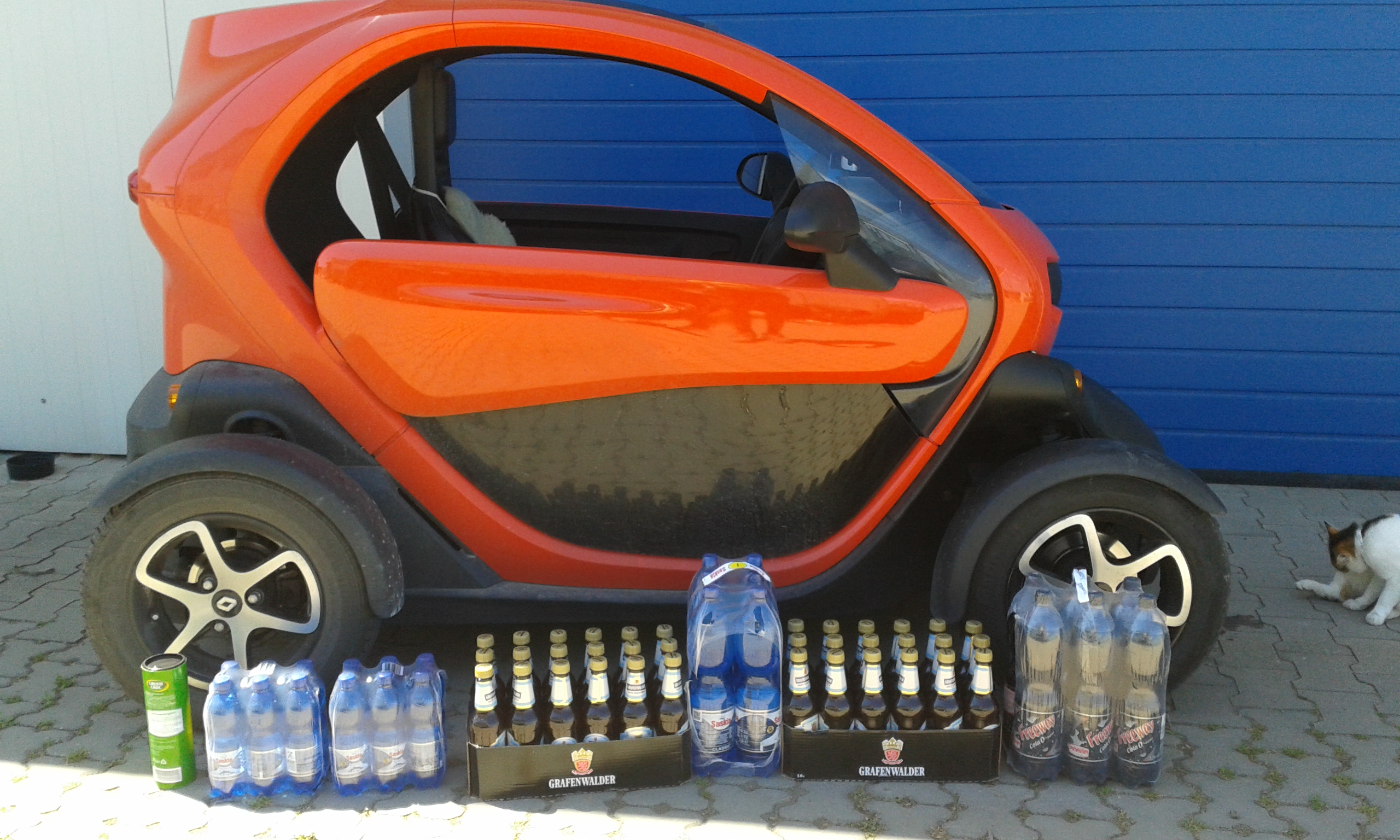 Habe im Smart (1) schon mal 11 Kisten Mineralwasser zum Händler zurück gebracht. Das geht im Twizy sicherlich nicht.