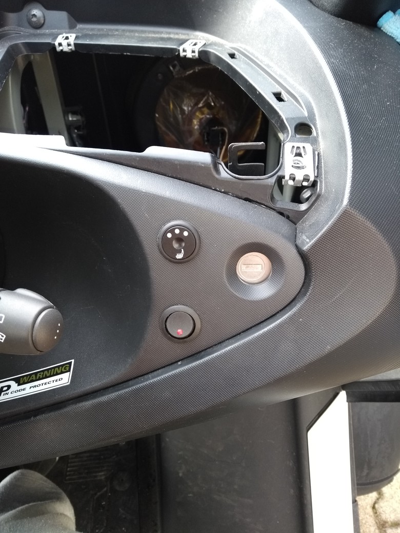 Schalter Sitzheizung und Innenlicht ins Armaturenbrett gebaut, sowie auch endlich den Ferrit-Kern rein gewickelt (Pfeifen in Lautsprecher vom DC Wandler)