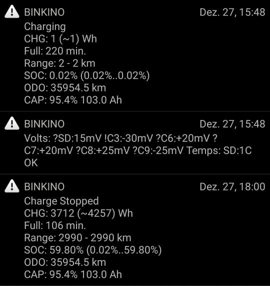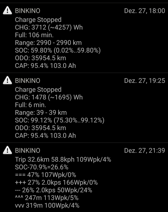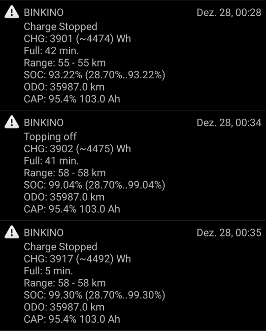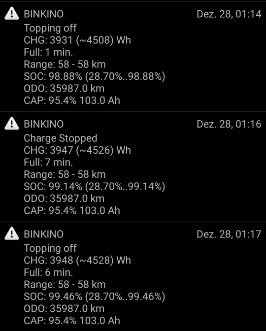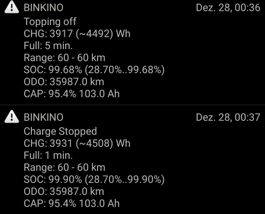 Ist dann zwischendurch laut OVMS auch wieder auf 98% und schob wieder 15 Ampere in den Akku laut OVMS