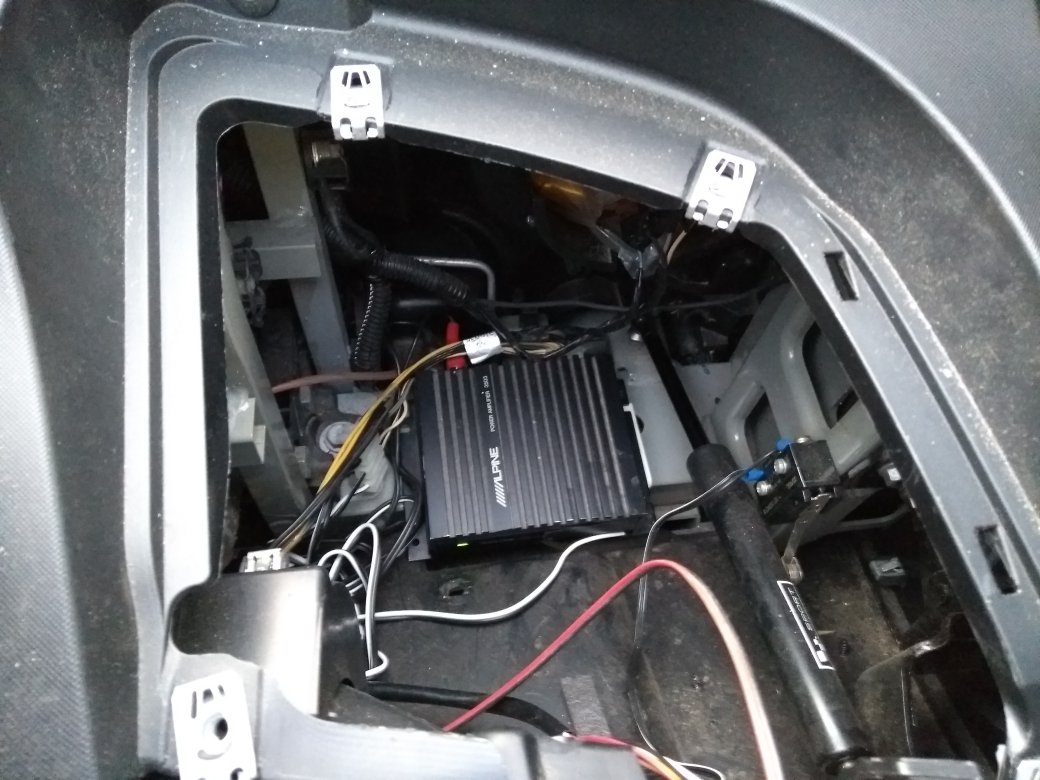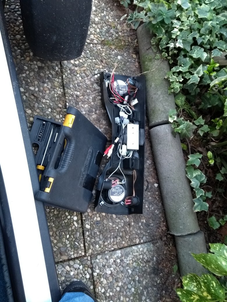 Jetzt fehlt mir im Moment auch die 12V und 5V aus der Lautsprecherbrücke ... provisorisch erst mal die Kabels, die quer durch die Lautsprecherbrücke liefen, außen herum verlegt ...