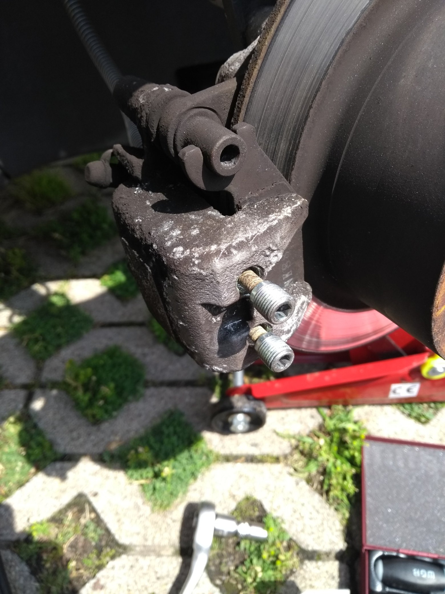 Wie gehabt ... Stehbolzen raus, Sattel hinten abschrauben (13er Nuß)