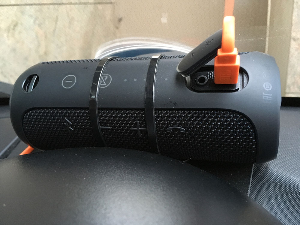 Evtl. unterhalb des JBL-Flips noch einen Streifen Anti-Rutsch-Pad legen.
