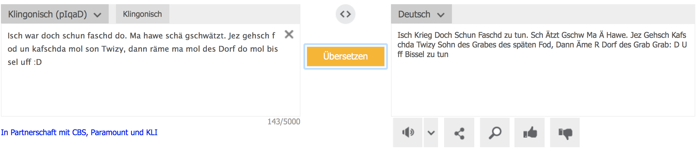 Ab und zu ist da mal ein Wort dabei, dass man eindeutig als Hochdeutsch identifizieren kann
