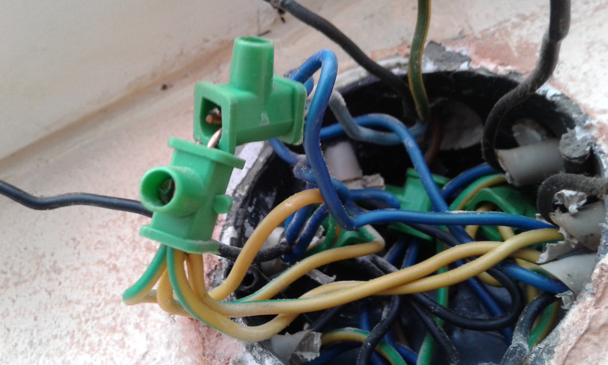 der kleine Draht, der die grünen LüsternenKlemmen mit den grün/gelben und den blauen Leitungen miteinander verbindet, kommt mir komisch vor.