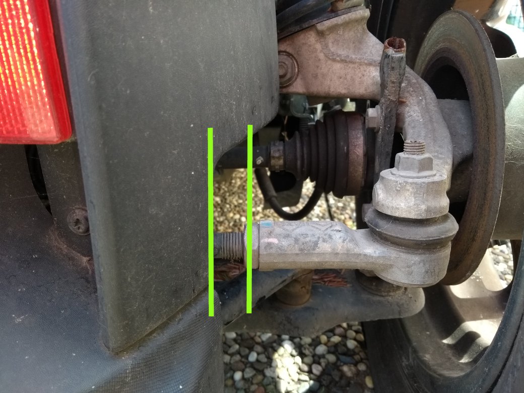 Hinten rechts steht die Spurstange 5mm weiter raus, als links.