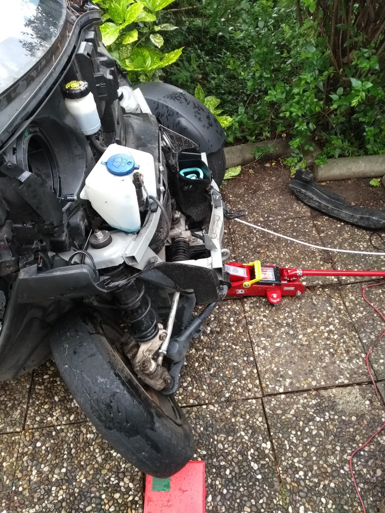 Die Beschädigung geschah also bei vollem Rechts-Einschlag, daher auch die krumme Lenkstange.