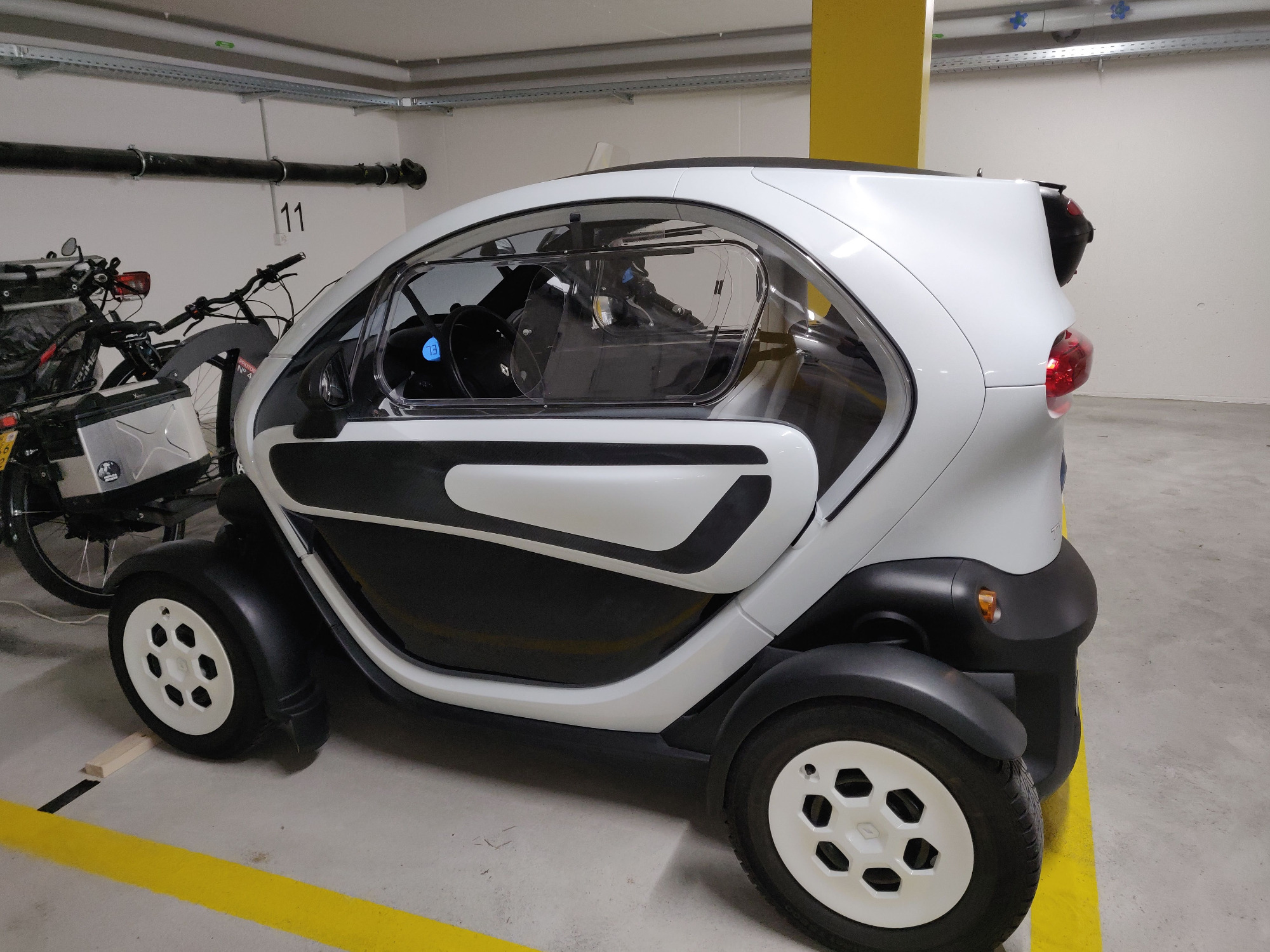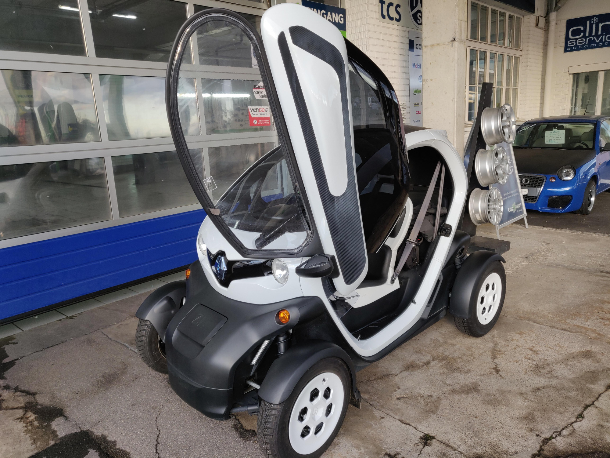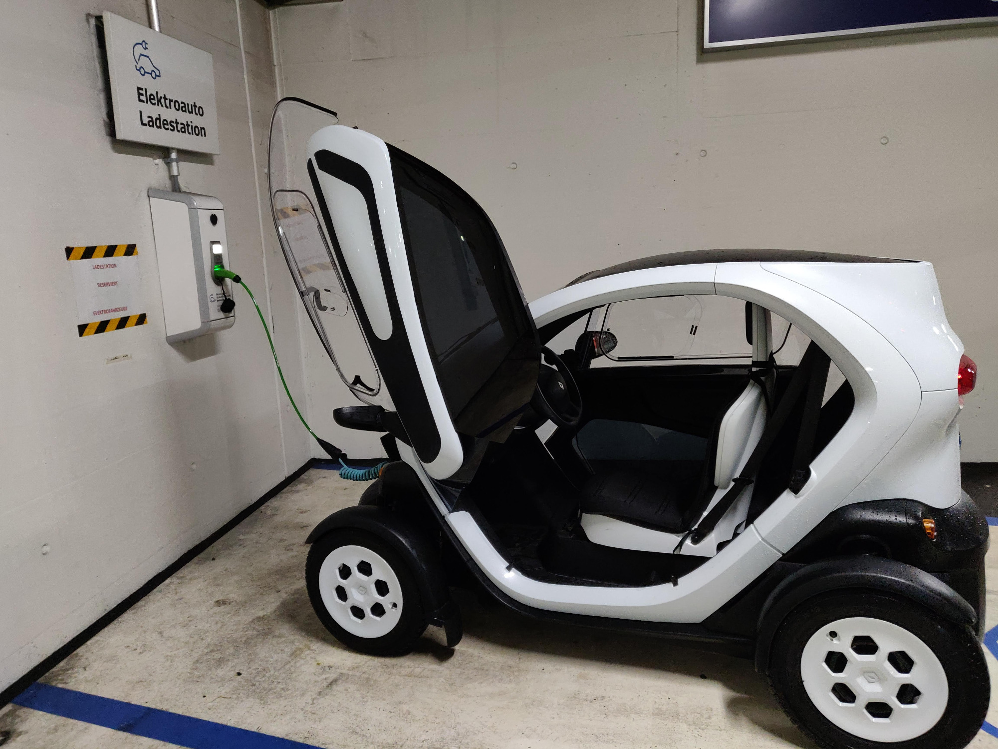 Mein Twizy ist ein Gebrauchter von 2013 (Weiss, Serie Technic mit rund 8000 km), den ich in der Umgebung gefunden habe. Die Wahl war einfach, denn es ist momentan das einzige Fahrzeug mit Türen auf dem Schweizer Markt, welches überhaupt ohne zusätzliche Ladestopps zu mir nach Hause fahren kann
