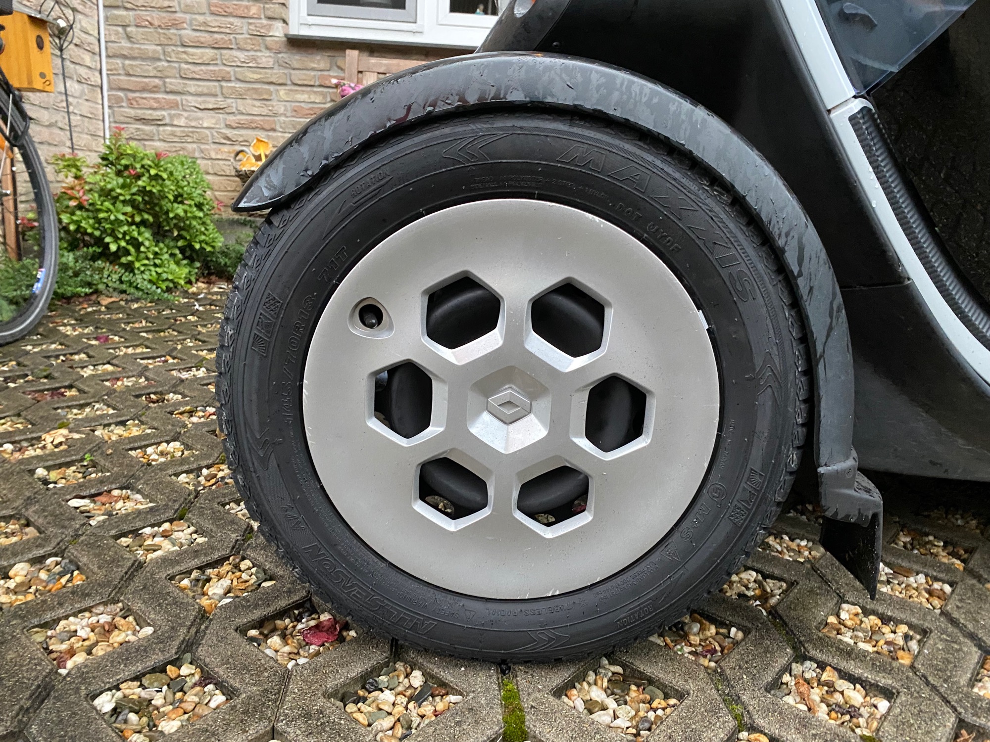 Fotos sind bei dem Regenwetter nicht die besten, aber trotzdem mal für den Eindruck wie vorne 145/70 aussehen.