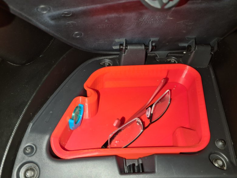 Die Ablage ist auch cool. Wie TwizyChrisy in dem Druck-Thread schrob, das ist ein echter Zugewinn. Alles was nicht immer gebraucht wird, ab nach unten. Brille, Maske, Chip für Einkaufswagen nach oben. Alles schön Ordentlich