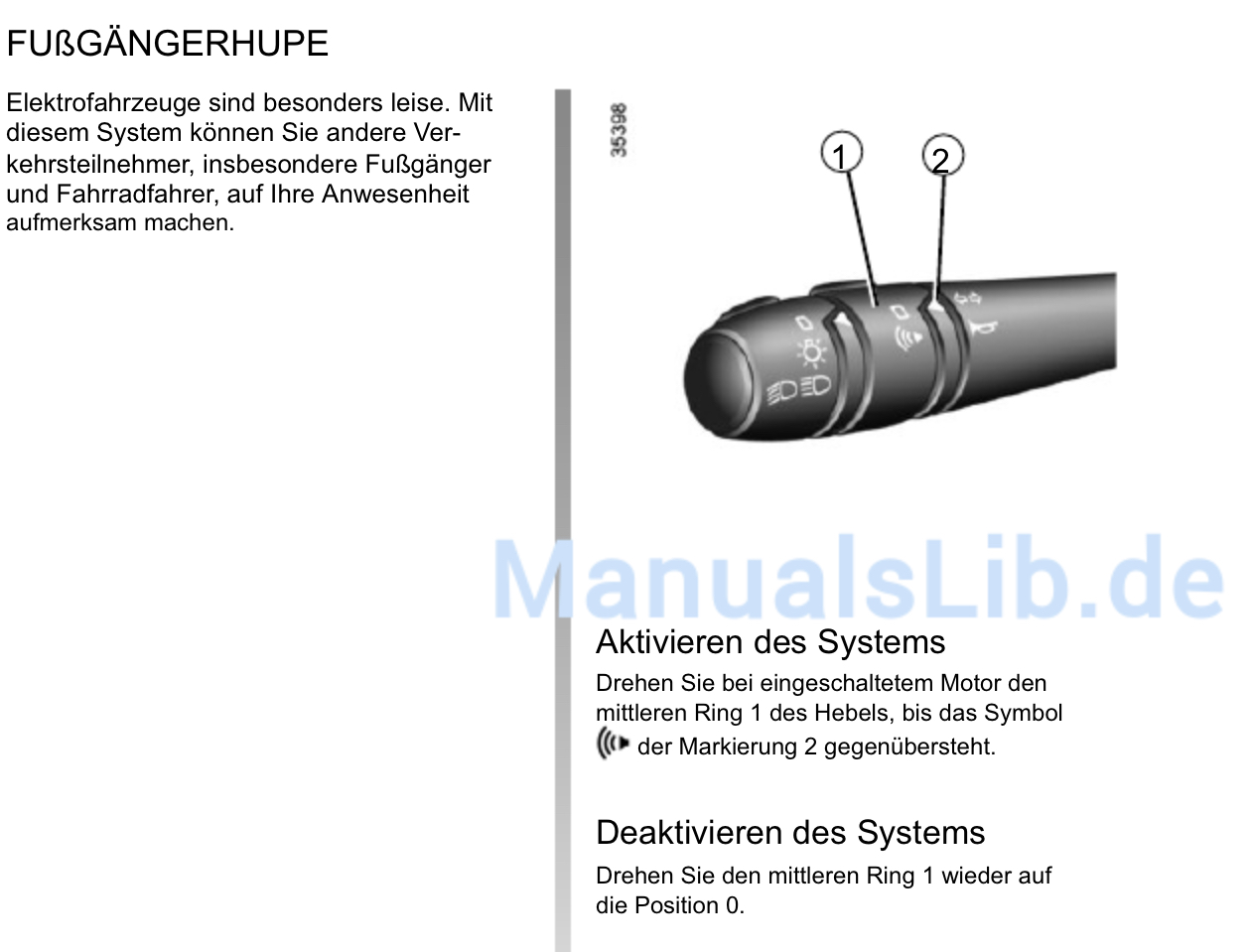 Fußgängerhupe (Rechter Lenkstockschalter (bei anderen Renaults Nebelscheinwerfer))