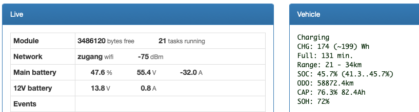 Aus der OVMS-Statusmeldung kannst du dann den Unterschied zwischen netto und (brutto) ablesen.